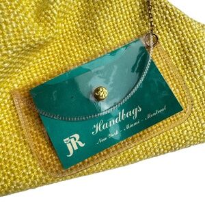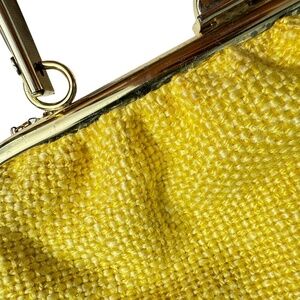 This fun & classic yellow burlap purse with gold & tortoise shell handle by Jules Resnick is a great addition to any warm weather outfit.