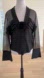 Long sleeve black blouse with sheer mesh sleeves and top of blouse on front and back. Pleated horizontal satin detail on end of sleeves and bottom half of blouse. Large flower embellishment at top of button front. Based on the CA number, this is JS Collection, brand tag has been removed. 80% polyester/20% spandex. Freshly dry cleaned before listing. Made in Canada.