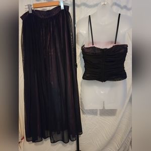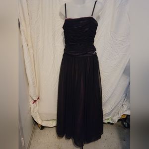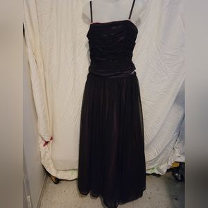 Elegant strapless dress by JS Collections. Features a ruched bodice and flowing skirt. Perfect for evening events. Could use a dry cleaning, price reflects this.