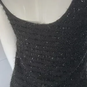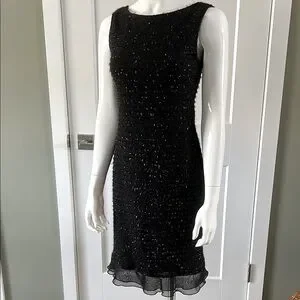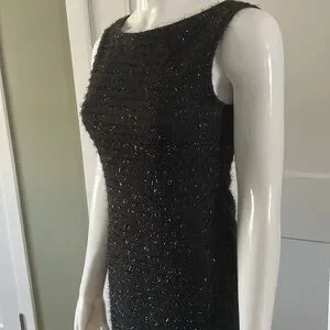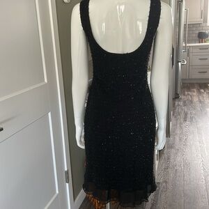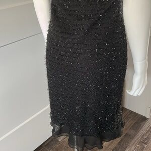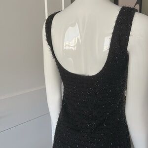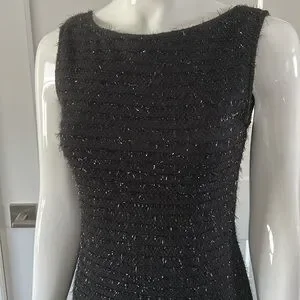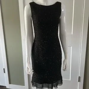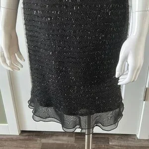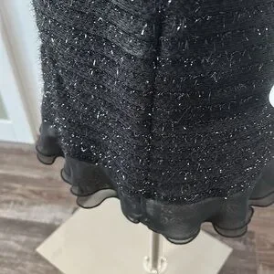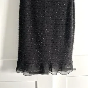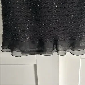 Stunning little black dress with silver shimmery details and wonderful sheer ruffle hem.