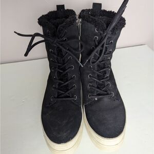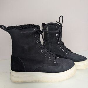 J/Slides Waterproof Suede Sneaker Boots – Black with Faux Fur Lining, Size 7.5