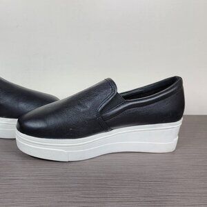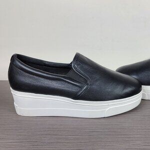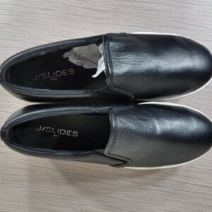 J/Slides Wedge/Platform Slip On Sneaker, Black Leather, Womens Size 9 US
