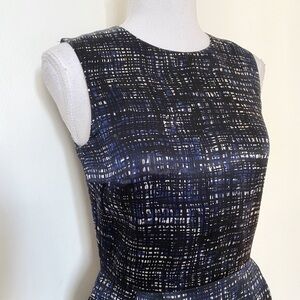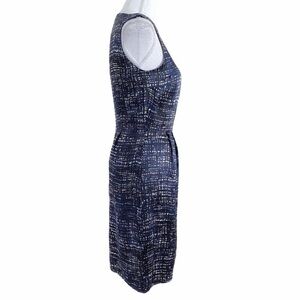 JUDITH & CHARLES 100% SILK BLACK BLUE WHITE PATTERN SLEEVELESS SATIN DRESS - 0