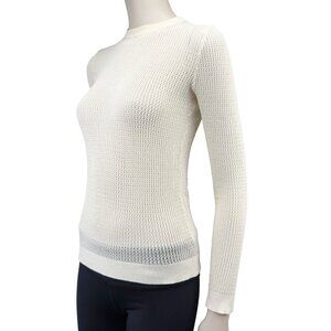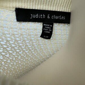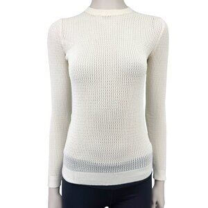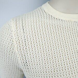 JUDITH & CHARLES Designer Knit Open Mesh Beige Cream Long-sleeves Top sz S