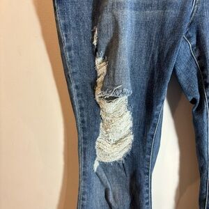 JUDY BLUE Sz 18 Distressed Mid Wash Flare Bottoms High Rise Jeans.
