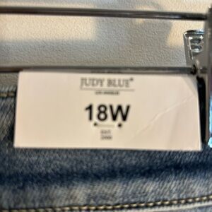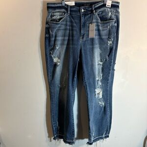 JUDY BLUE Sz 18W Jeans Distressed Raw Hem Straight Leg High Rise Mid-Wash NEW.