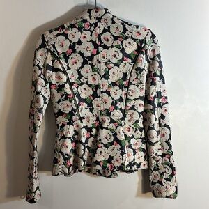 JUICE COUTURE Sz XS Lambskin Peplum Hem Floral Moto Style Jacket Mao Neckline. Unique, rare, super soft. Feminine and elegantant. Statement piece. In excellentt condition.
