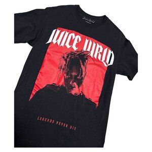Stay true to your hip hop roots with this Juice WRLD streetwear tee shirt. Featuring a bold graphic print on a classic black cotton material, this shirt is perfect for any music lover.