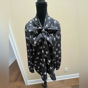 JUICY COUTURE Black SongBird Printed Long sleeve Blouse women’s size Medium