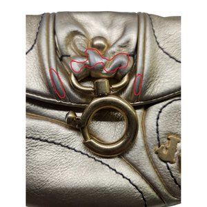 JUICY COUTURE Vintage Y2K Leather Wristlet Clutch – Gold Metallic (EUC)