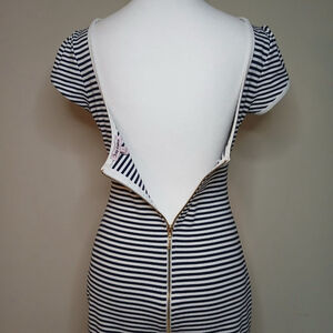 JUICY COUTURE Y2K Striped Fitted Blue & White Full Back Zipper Dress Size Small