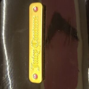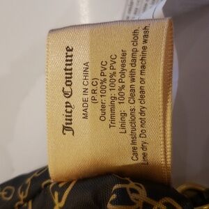 This Juicy Couture tote is in fair condition. Some smudges and faint marks throughout. Chain straps patent leather has come unglued. See photos for condition.