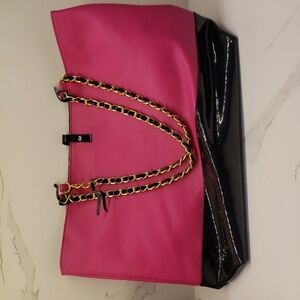 #1371 Juicy Couture Glam Tote Bag Pink Black Patent Leather Gold Chain Purse 18" x 12" x 5"