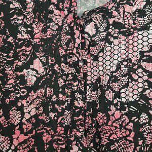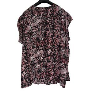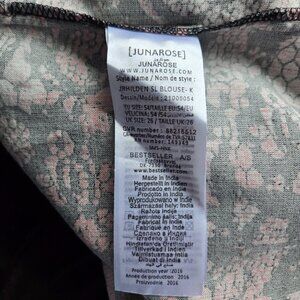 Very pretty top with very small sleeves (length is like a cap sleeve), and hidden buttons part way down the front. Gorgeous pattern. European size 54.