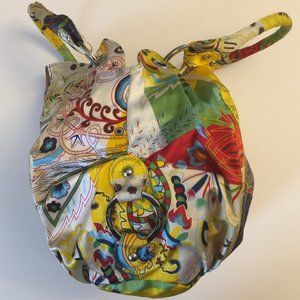 VERY RARE and UNIQUE- Junior Drake silk material yellow/red/ multi-colored shoulder bag.