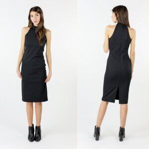 JUST Female Asta Ribbed Pencil Dress Halter Stretch High Neck Knee Length Black NEW XS