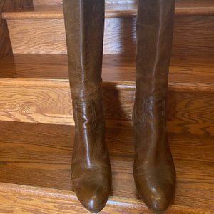 JUST REDUCED! Frye Knee High Cognac Brown Leather Boots, Back Zipper Size 9M