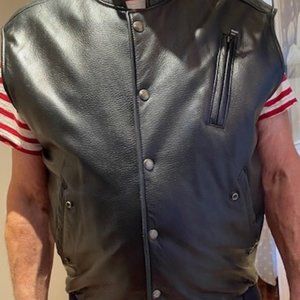 JUST REDUCED! MEN'S HOLT RENFREW QUALITY BLACK LEATHER VEST, SIZE 44