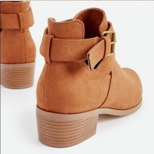 JUSTFAB Cognac Low Rider Strap & Buckle Boots Size 10