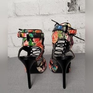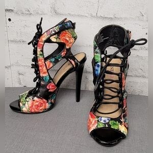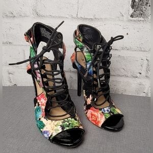 JUSTFAB Jasline Floral Lace Up Stilettos