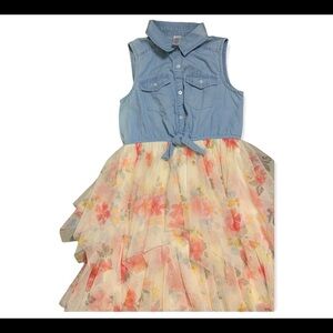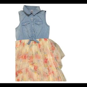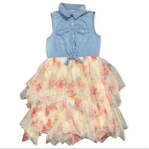 JUSTICE Jean Chambray Floral Tulle Tiered Mixed Media Dress Blue Girls Age 10Y