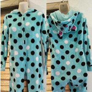 JUSTICE | Size 12 | Leopard, Cheetah, Cat | Fleece Polkadot Hooded Pajama | GUC