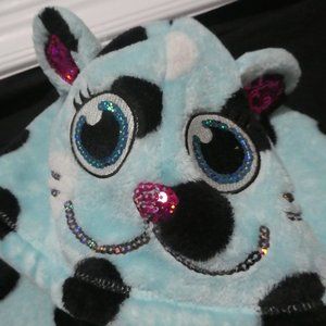 Cute animal face with cute shiny sequin eyes, nose, whiskers and ears