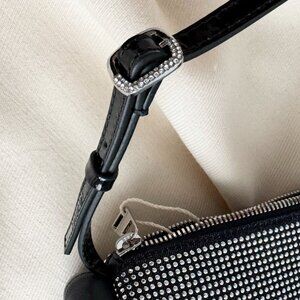 SUCH a cute little bag for day or evening (very fun for evening though!). This shoulder bag is crafted from denim with little crystal embellishments on denim, with navy leather trimming on the iconic tubular trim that this particular bag is known for! Carry it on your arm. or tucked up under your shoulder for a deeply nostalgic 2000's feeling. Zip fastening along the top keeps your belongings secure.