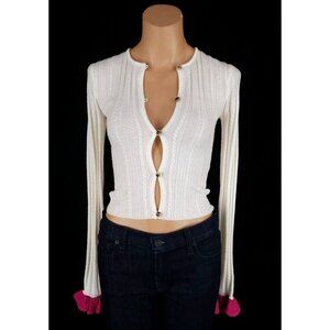 JW Anderson Ruffle-Detail Knitted Cardigan XXS Womens Off-White Pink NWT