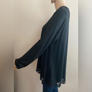 Black Long Sleeve Top with Scalloped Lace Trim at Hem