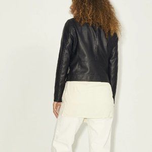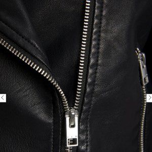 Funky looking faux leather biker jacket. Practically new. No rips, tears or marks. Outer: 100% Polyamide; Lining: 100% Polyester; Sleeve: 100% Polyamide