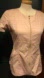 Light pink scrub top with a gold front zip and snap pockets at the sides. Short sleeves and tailored fit. Unique style! Jannuu doesn’t make them like this anymore!