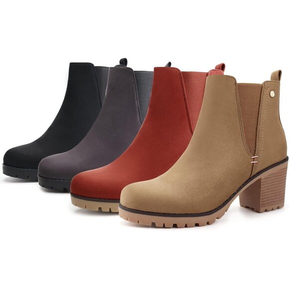 Jabasic Womens brown Chelsea Block Heel Slip On Faux Suede Classic Ankle Booties