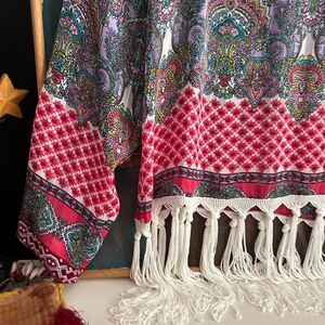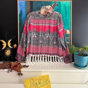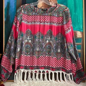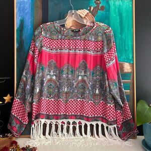 Jac Dale Vibrant Pink Patterned Fringe Blouse M