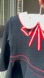 Elegant navy dress with a white collar. Red bow and trim add a classic touch. It is in good used condition with no rips or stains but has minor pilling along the front