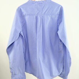 Blue and white stripes with a 1/4 button neck.