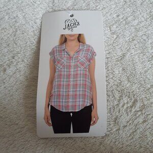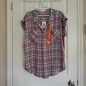 Jachs Girlfriend NWT Women's XXL Pink Gray Plaid Short Sleeve Button Down Shirt