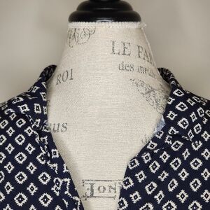 Blue & white diamond pattern Buttonup Collared Shirt Blouse with double front Pockets, by JACHS Girlfriend.