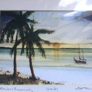 Jack Blackman Giclee print Bahamas scene palm tree boat pencil signed