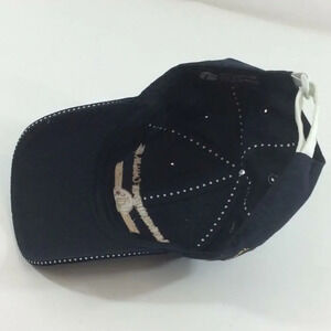 Navy blue adjustable back 100% cotton hat. Great condition, with no major damage.
