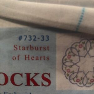 Jack Dempsey Needle Art Starburst of Hearts cross-stitch or embroidery kit. No 732-33 6 - 18” by 18” blocks to make up whether you ar ecross stitching or embroidering. Bonus embroidery thread is in the bag also and embroidery floss is not cheap.
