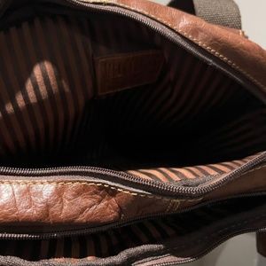 Brown leather, great condition, ample pockets great for storing things from pens to keys to pencil cases to books and papers etc.