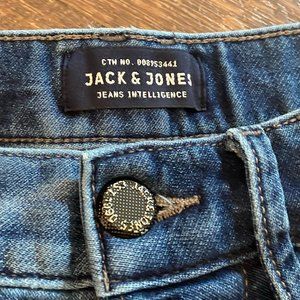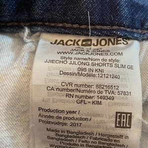 Jack + Jones Echo Long Shorts in Distressed Denim- Size 30