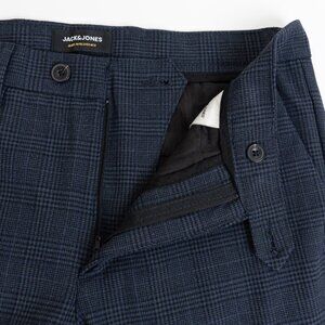 Jack & Jones Marco Slim Dress Pants 31x34 Fit Bi-Stretch Navy Check
