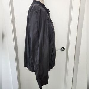 Dark Charcoal Grey Multi Pocket Zippered Bomber Utility Field Jacket with military style snap button shoulder epolettes, by Jack + Jones Denim Co.