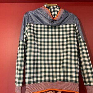 Jack & Jones Men's Green Checkered Full Zip Jacket - Size 175/96a or US Medium - Great preowned condition! Hooded. Fleece lined. Two front zippered pockets. Red Hawks patch logo on top of hood.