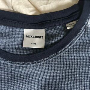 Jack & Jones Mens Navy and White Medium Textured Long-Sleeve Shirt