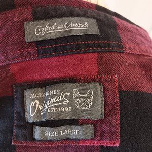 Jack & Jones Red Black Buffalo Plaid Button Down Long Sleeve Shirt Men's Size L