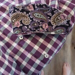 Jack Lipson Signature Shirt Flip Cuff Paisley Plaid Eclectic Size: 16.5