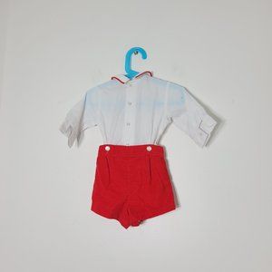 Jack Tar Three Piece Baby Outfit Corduroy Embroidered Train Red Shorts Vintage Collared Special Occasion Church